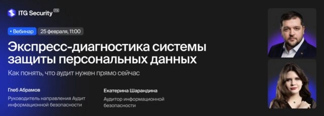 Вебинар 25 февраля 2026: экспресс‑диагностика защиты персональных данных, когда аудит обязателен из‑за ужесточения штрафов и проверок.