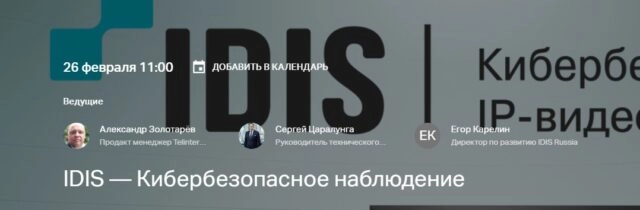 Вебинар 26 февраля о кибербезопасном видеонаблюдении IDIS: архитектура, аналитика, TCO, поддержка и демонстрация шоурума.