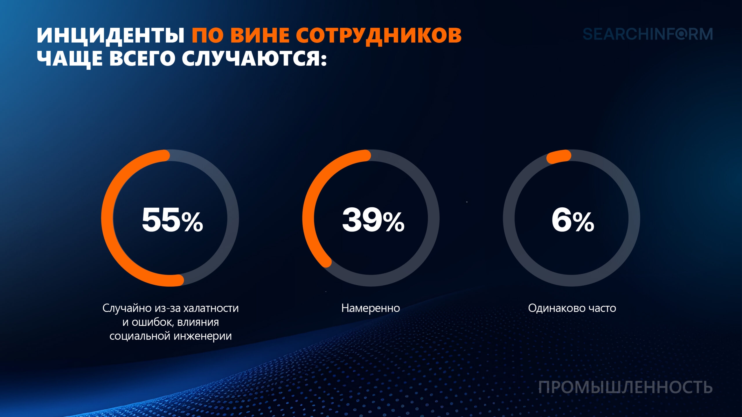 В 2025 году 43% промышленных организаций фиксировали различные инциденты информационной безопасности по вине сотрудников: от дискредитации компании до утечек данных и корпоративного мошенничества. В 39% случаев сотрудники совершали инциденты намеренно.
