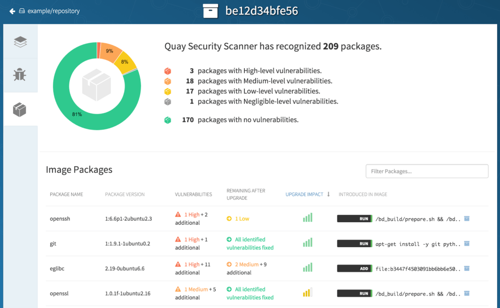 Clair – это программа с открытым исходным кодом, которая включает в себя статическое сканирование безопасности и уязвимостей для контейнеров docker и application (appc).