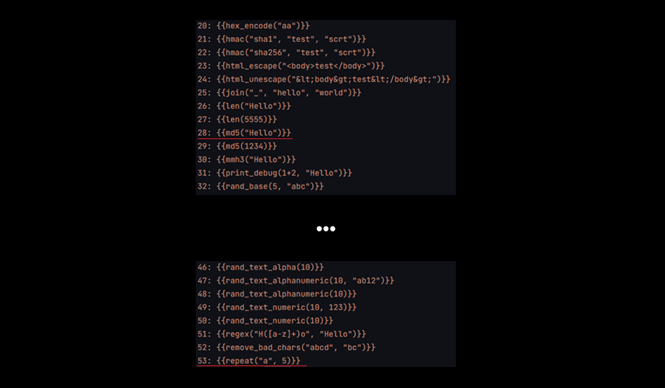 Несмотря на то, что эта атака – в чистом виде Client Side Template Injection, Алиса не может обращаться к системным файлам, перезаписывать что-то или открывать соединения, потому что под капотом используется собственная библиотека от ProjectDiscovery, функционал которой с точки зрения зловредной нагрузки довольно ограничен и содержит около 80 функций. Но даже этих функций достаточно для развития трёх направлений, о которых речь пойдет далее.