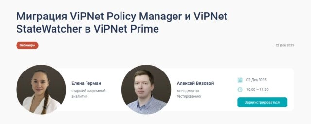 Вебинар «Миграция ViPNet Policy Manager и ViPNet StateWatcher в ViPNet Prime»