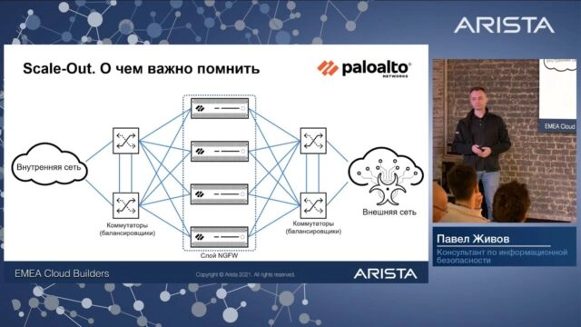 Выступление на конференции Arista Cloud Builders 2021, где мы рассказываем об одном из подходов к наращиванию производительности подсистемы NGFW, а также говорим о гибридных сценариях, основанных на подходе горизонтального масштабирования. Содержание: 00:00:00 — Классический сценарий на базе НА-пар 00:07:17 — Сценарии для горизонтального масштабирования и чем важно помнить 00:16:49 — Как настроить балансировщики (коммутаторы) 00:29:36 […]