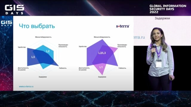 Инженер отдела технического консалтинга компании «С-Терра СиЭсПи», Светлана Медведева, выступает с презентацией на тему «“СЕРЕБРЯНАЯ ПУЛЯ” КРУПНОГО КАЛИБРА. Есть ли универсальное СКЗИ для защиты магистральных каналов связи» на форуме GIS Days-2022. Запись трансляции GIS DAYS 2022. 7 октября. День Кибербезопасности.