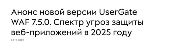 Вебинар о UserGate WAF 7.5.0 и угрозах веб‑приложений в 2025 году состоится 23 декабря в 10:00.
