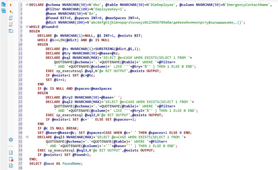 Если мы попробуем перебирать значения по маске, то мы будем работать не исходными значениями, а уже замаскированными, что не позволяет узнать исходные значения, как в Oracle и или MSSQL: