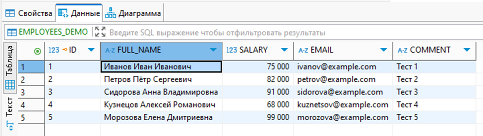 - Поддержка режимов INSERT и UPDATE для СУБД;