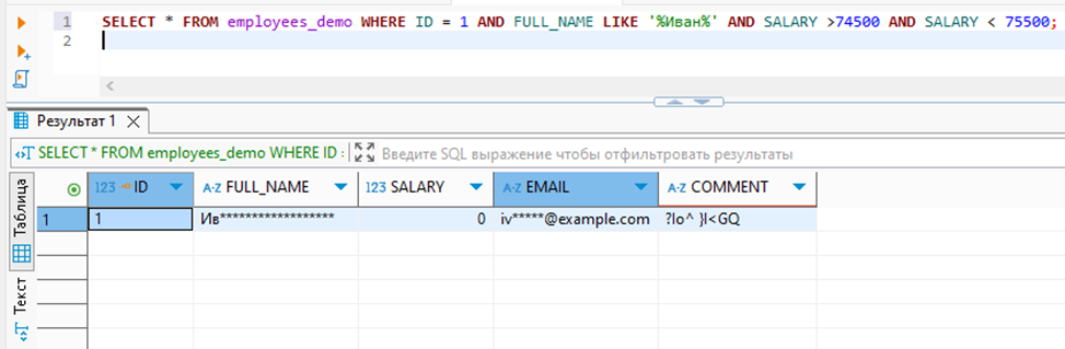 В Oracle и MSSQL динамическое маскирование работает “на лету”, применяясь при выполнении SQL-запроса, но при этом фильтры WHERE и условия запроса все равно оперируют реальными значениями столбцов, поэтому исходные данные могут быть восстановлены. В PostgreSQL Anonymizer маскирование устроено иначе: движок SQL видит только уже подставленные маски, а не реальные значения, поэтому перебор условий или фильтров по исходным данным невозможен.