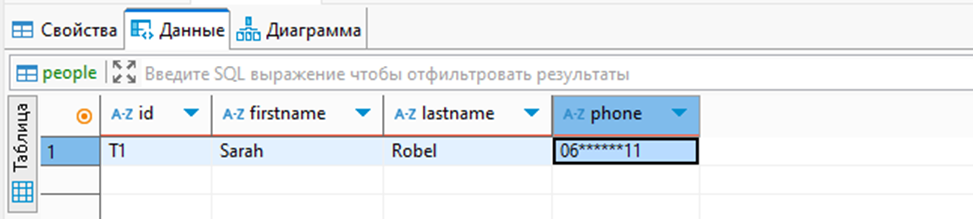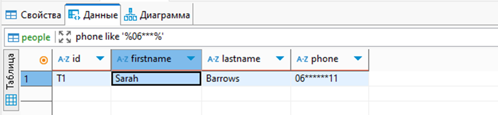 Пример того, как выглядят замаскированные данные (поле lastname при повторном запросе формируется заново):