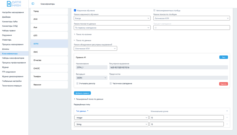 - ML-алгоритмы для автоматического обнаружения конфиденциальных данных;