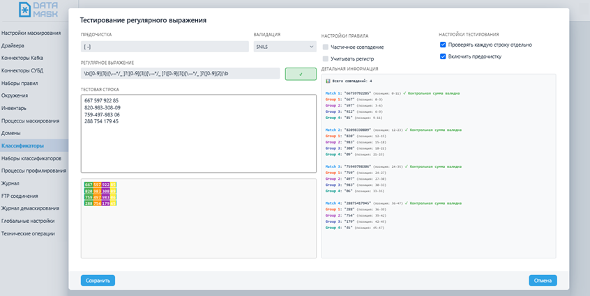- Настройка наборов правил для гибкой фильтрации профилирования/маскирования и контроля пользовательских изменений, структуры БД и объемов исходных данных;