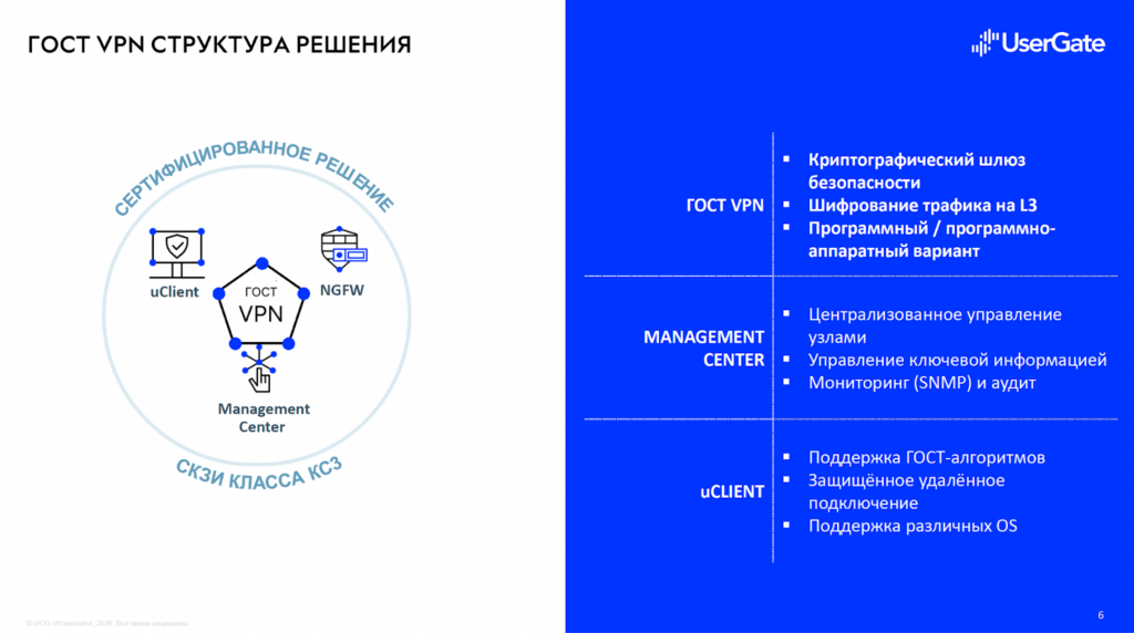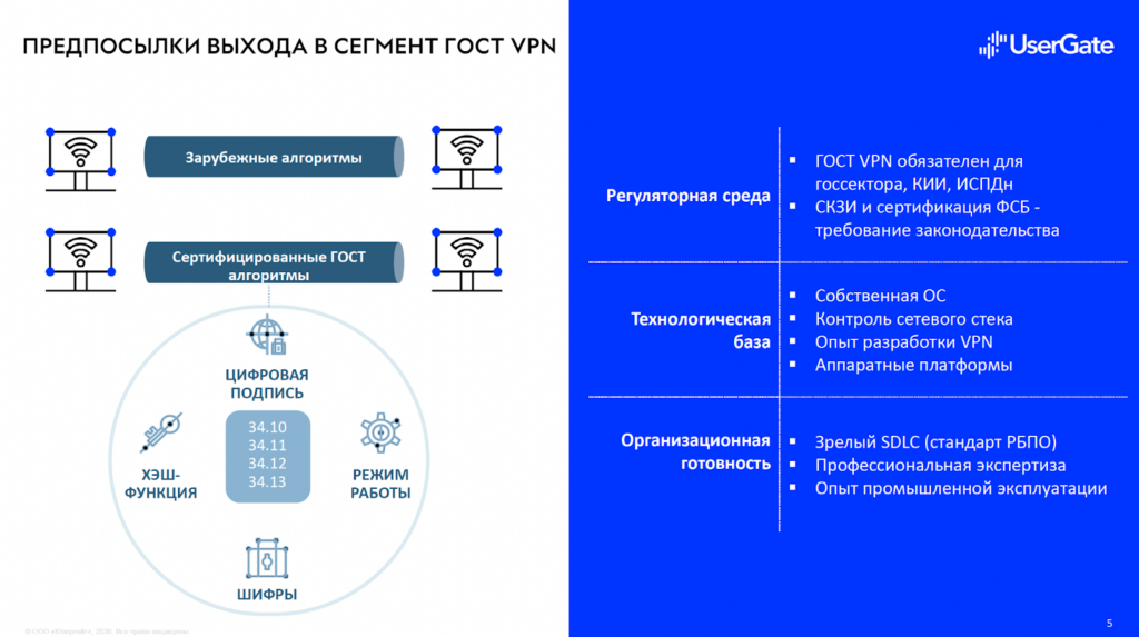 Главный анонс выступления — выход UserGate в сегмент ГОСТ VPN.