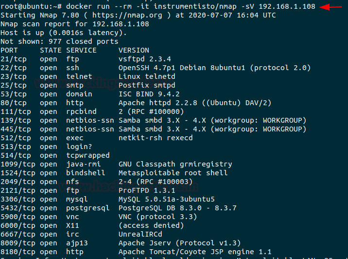 docker run --rm -it instrumentisto/nmap -sV 192.168.1.108