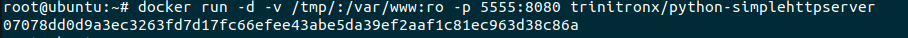 docker run -d -v /tmp/:/var/www:ro -p 5555:8080 trinitronx/python-simplehttpserver