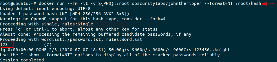 Теперь, если у пользователя есть хэш-файл на его компьютере, ему нужно выполнить следующие действия, чтобы применить образ Docker для John the Ripper и получить пароль из хэш-файла.