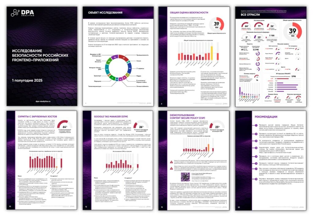 В ходе исследования DPA Analytics за 1 полугодие 2025 года были проанализированы frontend-приложения более 3000 российских компаний различных отраслей от промышленности и финтеха до услуг, медицины и маркетплейсов.