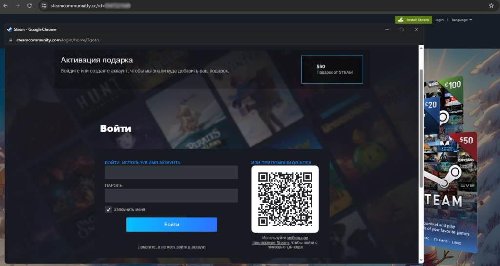 Киберпреступники постоянно совершенствуют схемы угона учётных записей Steam. Чаще всего для этого создают фишинговые страницы игровой платформы, которые выглядят как настоящие. Задача злоумышленника – перевести пользователя на поддельную страницу, а затем убедить его ввести логин и пароль.