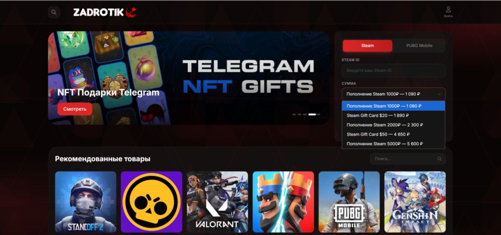 Злоумышленники создали фейковый маркетплейс цифровых товаров, который предлагает приобрести игровые ключи, внутриигровую валюту и подарочные карты для популярных игровых платформ. Мошеннический магазин размещён на домене zadrotik[.]com, созданном 19 января 2026 года.