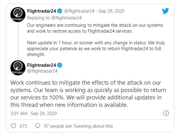 Спустя буквально несколько минут после публикации сервисом Flightradar24 информации о кибератаке, с аналогичным сообщением выступил сервис Flightaware.com: