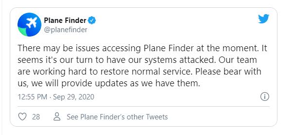Вскоре после раскрытия информации о кибератаке от Flightradar24 и Flightaware такое же сообщение опубликовал другой сервис – Planefinder.net. Он также был недоступен в течение некоторого времени.