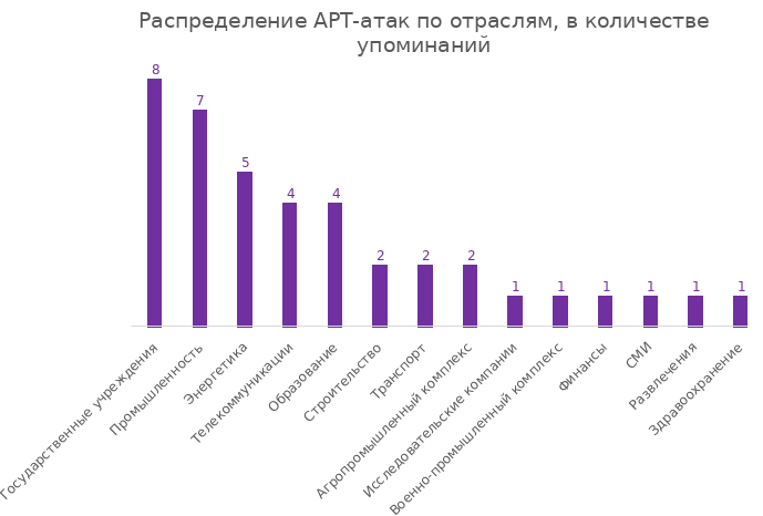 Во всех рассмотренных кампаниях отправной точкой компрометации инфраструктуры стал фишинг. Анализ показал, что каждая из выявленных группировок работала против российских государственных учреждений. Следом по частоте атак идут промышленность и энергетика, затем телекоммуникации и образование. В ряде кампаний злоумышленники комбинировали кражу данных с их последующим уничтожением, а в других – выстраивали долгосрочное присутствие, чтобы выкачивать документы и учетные данные.