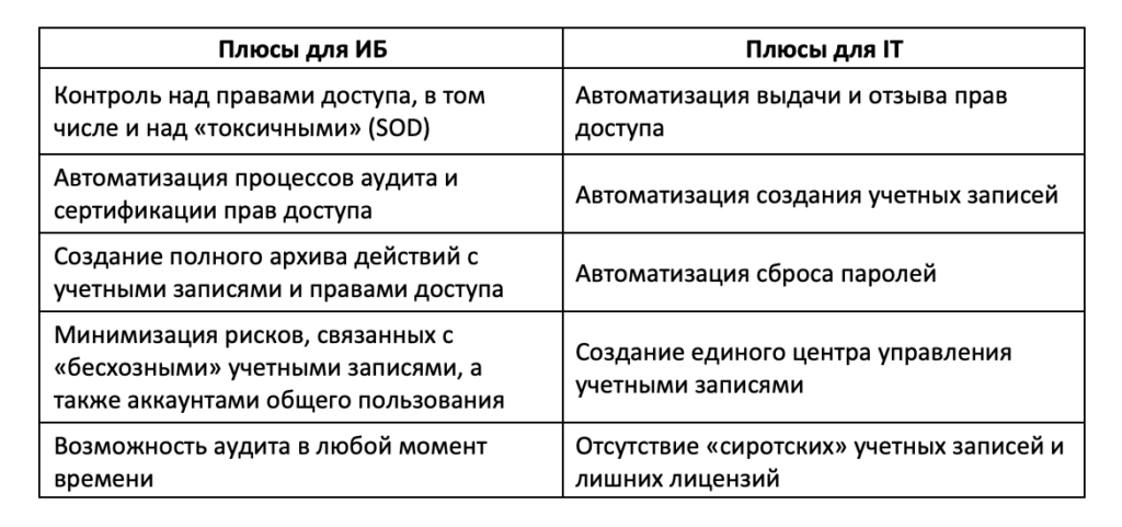 - Предоставление риск-ориентированной модели управления доступом, включая автоматизацию (конечно же, частичную) оценки рисков.