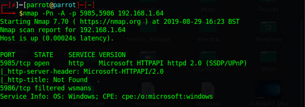 При сканировании ОС Windows пользователь имеет возможность наткнуться на данный процесс. На скрине изображены порты номер 5985 (http) и 5986 (https).