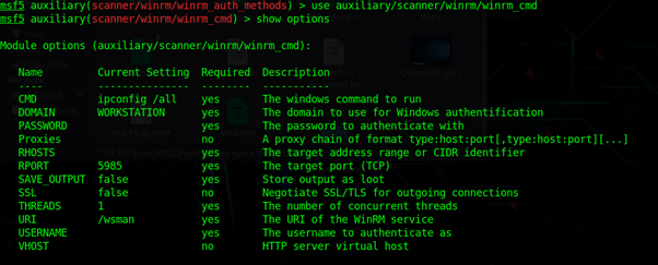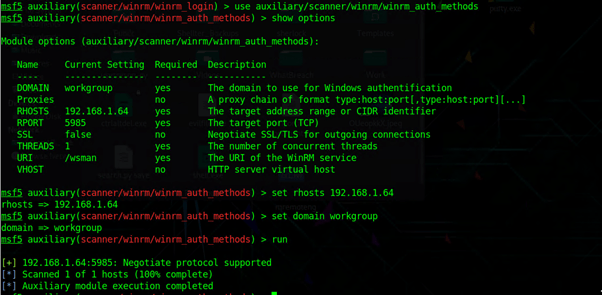 Используется следующая комбинация: auxiliary/scanner/winrm/winrm_auth_methods