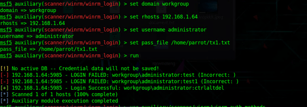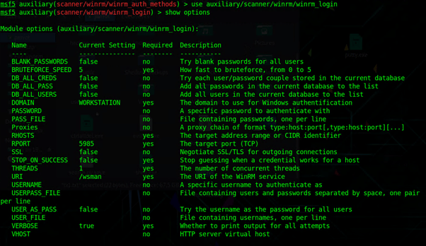 Используется следующая комбинация auxiliary/scanner/winrm/winrm_login