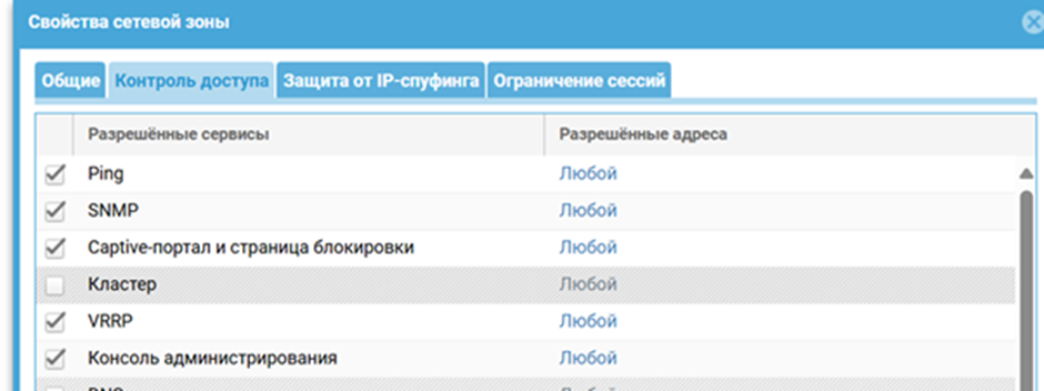 - Требования к зонам — для интерфейса, через который ноды будут обмениваться служебной информацией, нужно создать отдельную зону с разрешенным сервисом «Кластер». Это вопрос функциональности и безопасности.