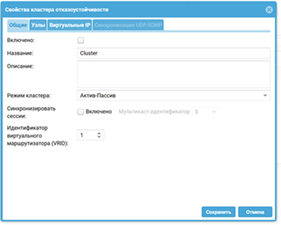 Что делаем: Переходим в Кластеры → Кластер отказоустойчивости. Создаем новый кластер, выбираем режим (например, Active/Passive) и даем ему имя.