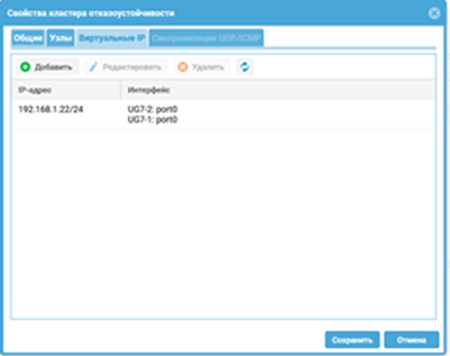 Что делаем: Добавляем в созданный кластер обе наши ноды из кластера конфигурации. Для каждой пары интерфейсов (например, port1 на обеих нодах, который смотрит в LAN) задаем общий виртуальный IP-адрес (VIP). Этот адрес и будет шлюзом по умолчанию для пользователей. То же самое повторяем для WAN-интерфейса.