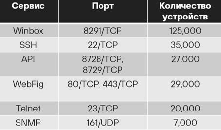 В Рунете таких коробочек расположилось более чем 200 тысяч. Любой сетевой безопасник советует не выставлять неиспользуемые сервисы в Интернет и ставить сервисы на нестандартные порты, однако, согласно табличке ниже, не все администраторы применяют такую практику.