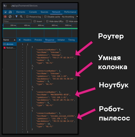 В некоторых случаях у некоторых провайдеров данные об устройстве вашей локальной сети уходят куда-то в Интернет. Да, так бывает и да, не всегда. Так, на примере ниже, кому-то можно узнать о всяких штукенциях обитающих в моей сети. История умалчивает, где и как могут использоваться, храниться такие данные, но факт есть факт.