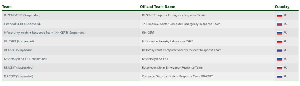 Международная организация FIRST объявила о приостановке членства CERT из России. Решение обусловлено санкциями, ранее введенными западными странами в отношении РФ.