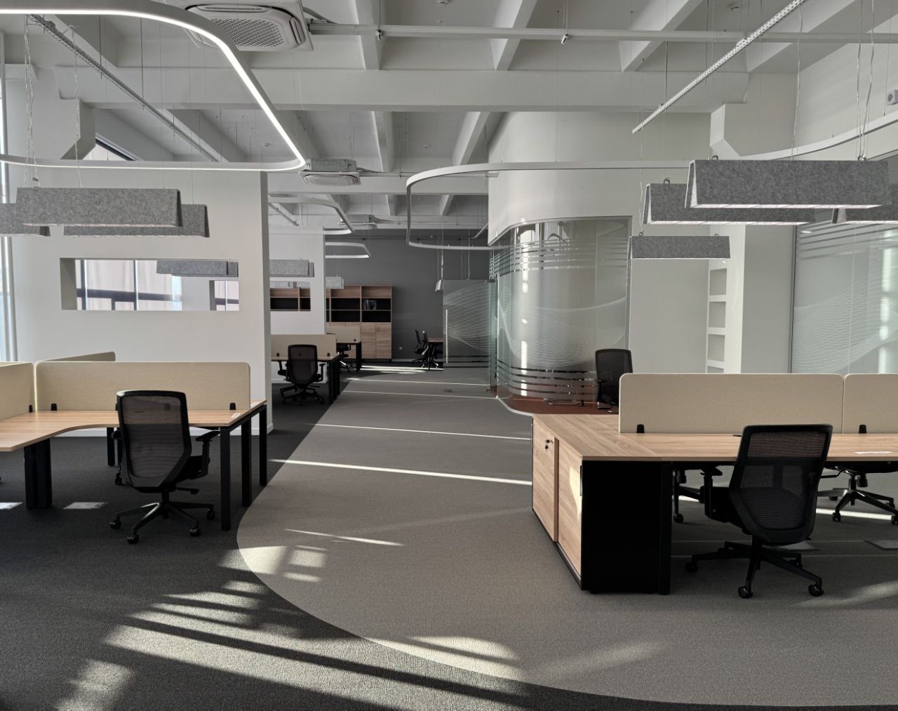 Пространство спроектировано за счет собственных средств НИИТМ и с учетом современных требований к рабочим зонам: в нем сочетаются отдельные кабинеты, открытые офисные зоны (open space) и переговорные комнаты разного размера. Масштабная модернизация затронула не только интерьер: было обновлено фасадное остекление и полностью заменены все инженерные коммуникации.
