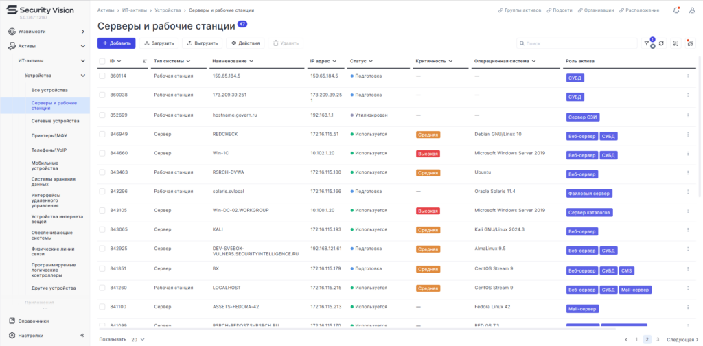 Реализованы динамические группы активов, автоматически формирующиеся на основе заданных критериев (типа ОС, версии, наличия уязвимостей и т.д.). Добавлен справочник категорий активов и возможность их автоматической классификации на основе баннеров сервисов и других характеристик. Расширены возможности автоматической инвентаризации инфраструктуры, включая сканирование по списку FQDN и инвентаризацию различных типов оборудования.