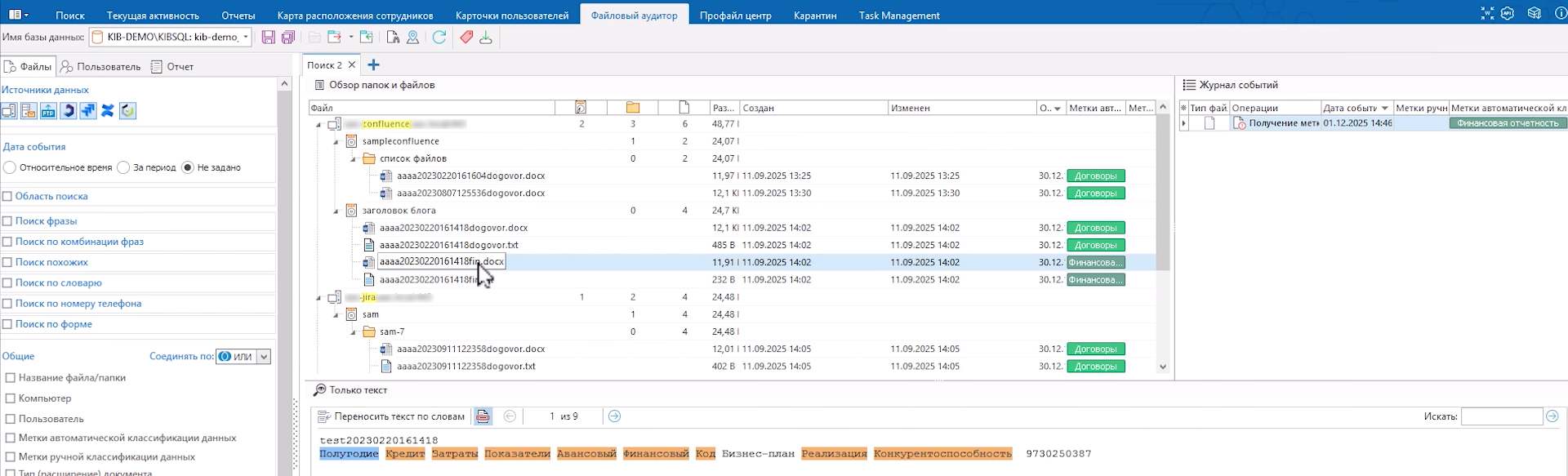«СёрчИнформ FileAuditor» нарастил возможности работы с распределенными хранилищами. Система научилась сканировать файлы из облачных пространств S3 и NextCloud, а также документы, вложенные в задачи Jira, и файлы, прикрепленные к WIKI-страницам Confluence. ИБ-специалист всегда видит, какая информация хранится в облаках и системах совместной работы, какие у файлов атрибуты и метки, и при необходимости может снять теневые копии.