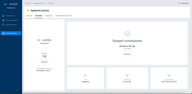 Обновления лицензии и ПО могут проводиться как через Интернет напрямую, так и через файлы (для обновления в закрытом контуре).