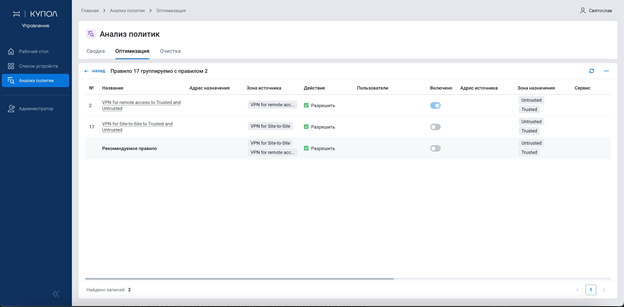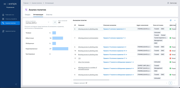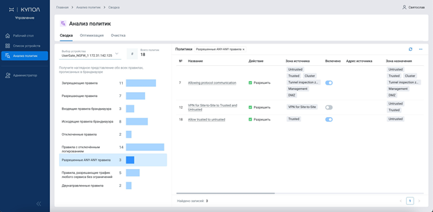 - Анализ и оптимизация политик на всех устройствах