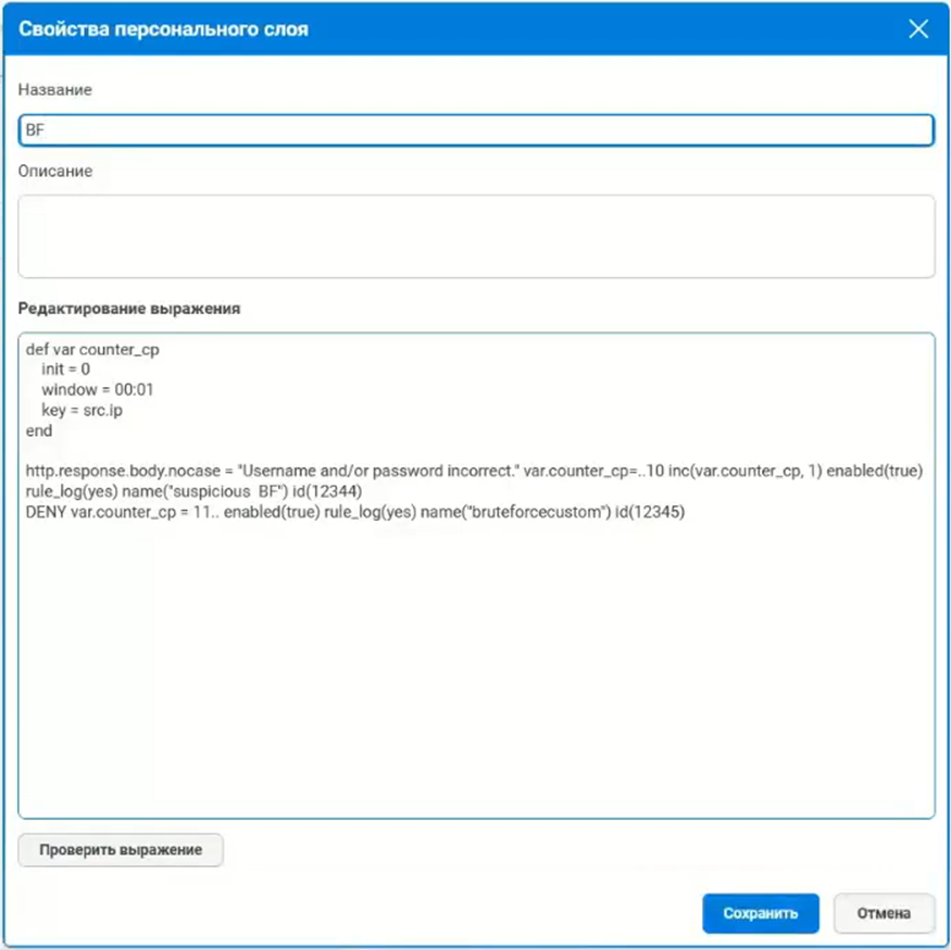 Также UserGate WAF позволяет писать свои правила, используя UserGate Policy Language (UPL) и встроенные библиотеки (GeoIP, список User-Agent’ов и т. д.). Например, заблокировать для пользователей из определенной локации доступ к странице аутентификации, оставив чисто информационные страницы.