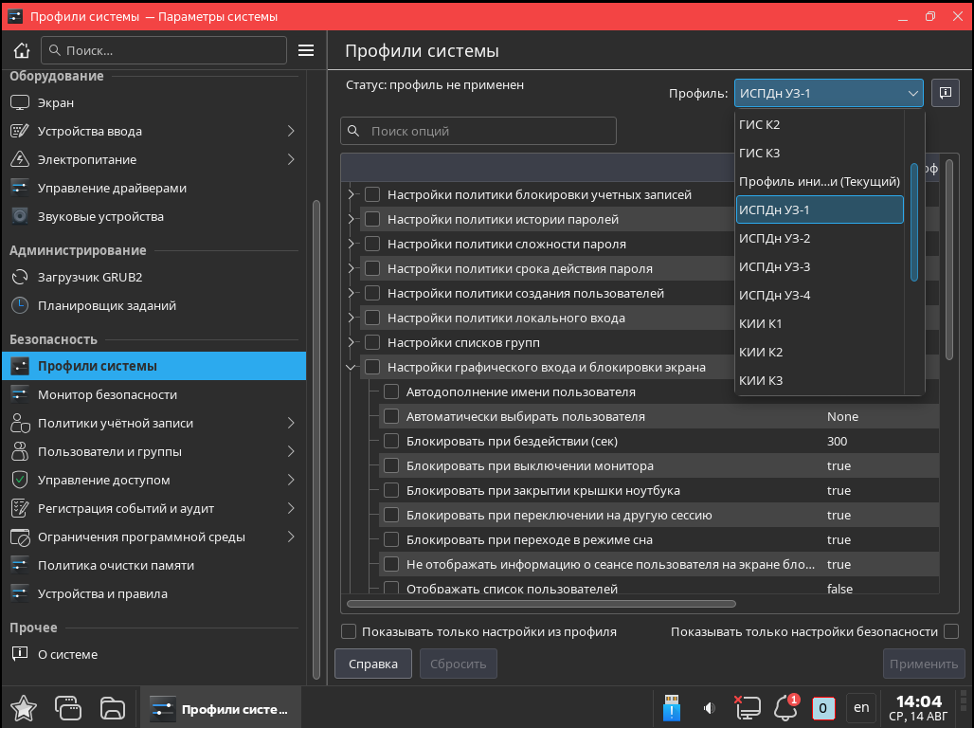 Профили настроек СЗИ должны сильно облегчить жизнь администраторам ИБ. Например, устройство под управлением Astra Linux 1.8 работает в ИСПДн с уровнем защищенности 1. И чтобы привести настройки системы в соответствие требованиям, не нужно долго копаться по разным конфигурационным файлам – достаточно просто указать необходимый профиль настроек. Тогда минимальная длина пароля будет установлена равной 8, контроль целостности и замкнутая программная среда – включены, root-доступ через SSH – выключен, плюс будут задействованы другие механизмы безопасности.