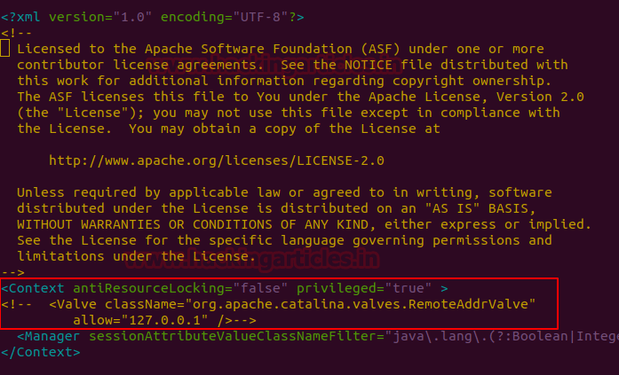 sudo nano /opt/tomcat/webapps/manager/META-INF/context.xml
