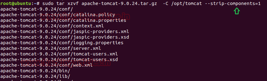 sudo tar xzvf apache-tomcat-9.0.24.tar.gz -C /opt/tomcat --strip-components=1