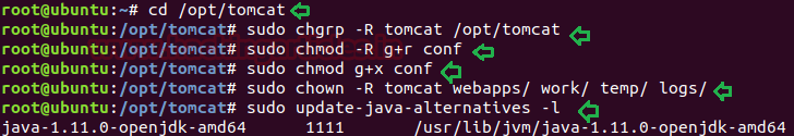 Пользователь начинает с установки Apache Tomcat, но перед этим он должен выполнить следующие команды.