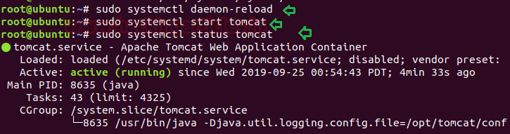 Нужно перезапустить systemd daemon, чтобы зарегистрировать только что созданный сервис Tomcat. Если все сделано правильно, пользователь сможет увидеть Apache Tomcat как системную службу.
