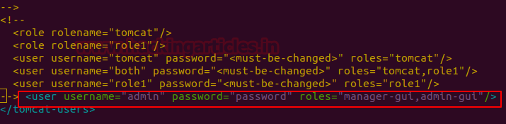<user username="admin" password="password" roles="manager-gui,admin-gui"/>