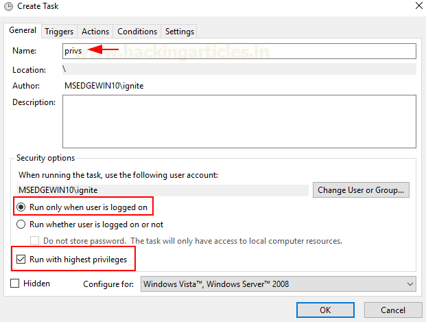 Шаг 2. Хакер назначает задачу для выполнения с наивысшими привилегиями для пользователя, вошедшего в систему.