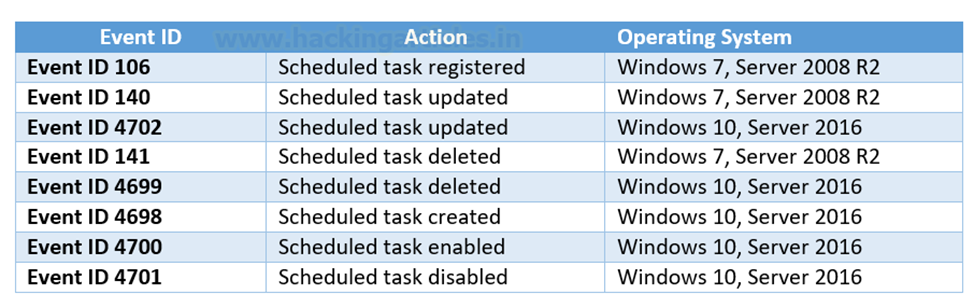 Следует включить конфигурацию “Microsoft-Windows-Tasksscheduler/Operational” в службе регистрации событий, чтобы получать сообщения о создании и обновлениях в запланированных задачах.